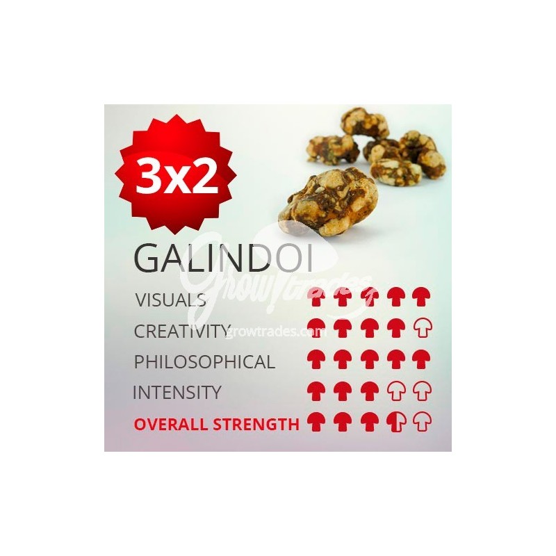 Otra de nuestras trufas ganadoras es la Galindoi, también conocida como "carne de los dioses" Esta trufa fue usada en las tradiciones espirítuales de los mazatecos, pueblo indígena de México que vive en el estado de Oaxaca. Esta variedad se identificó primero como Psilocybe atlantis, pero una investigación más atenta del experto en Psilocybe, Gaston Guzman, confirmó que se trata de una nueva especie de trufa mágica.